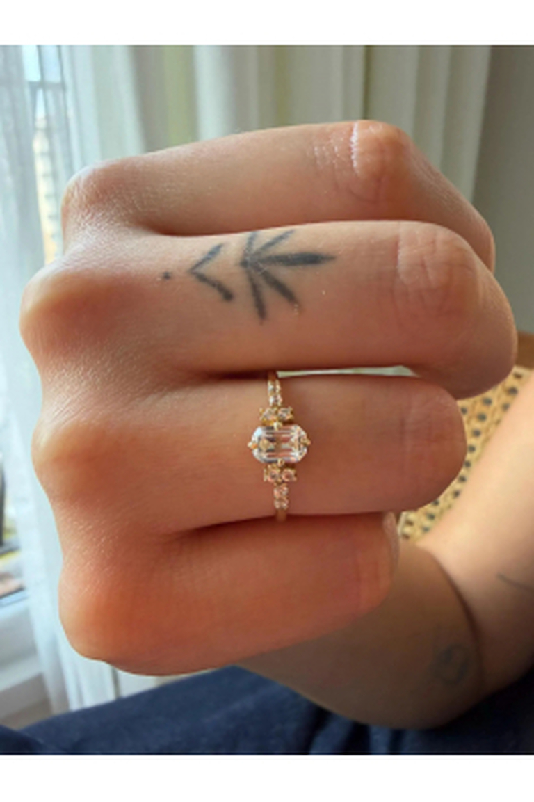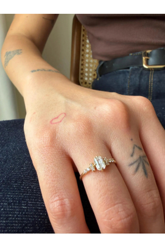 This 14K emerald-cut baguette solitaire ring weighs 1.87 grams and will be sent with a signed gold certificate.