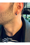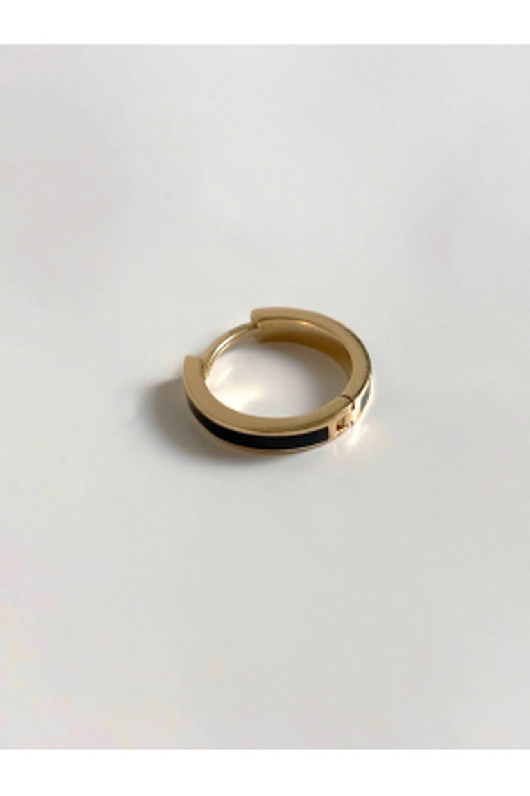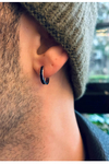 This black enamel men’s hoop earring is crafted from genuine 14-carat (14K) solid gold.