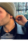 This men’s hoop earring is available in two different gold color options: yellow gold and white gold. For additional color options, please contact us via email.